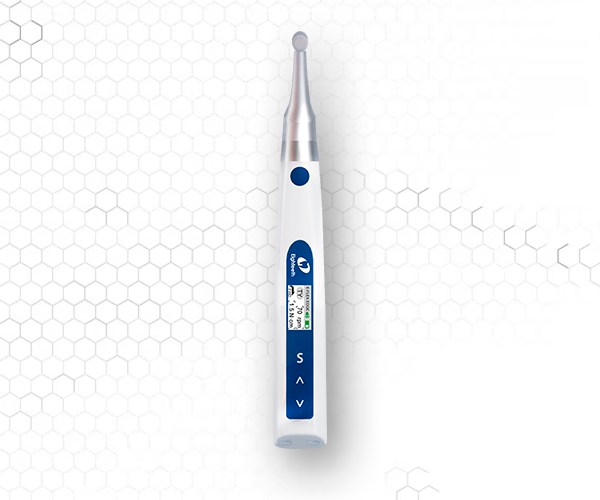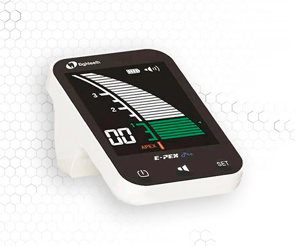 E-PEX: localizador de ápice inteligente, compacto y preciso, ideal para canales húmedos y secos. Pantalla LCD de 3,5″ y batería potente para una detección fiable.